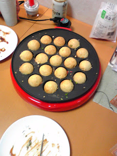 昨晩はたこ焼きでした.うちの奥さんの研究室のみなさんが,結婚祝いにくれたたこ焼き器.中々優れものです.後ろにぼんやり写っているのは,サッポロのエーデルピルス.限定発売のはずだけど,いつも行く酒屋には今でも普通に売っている.普段はエビスホップを飲んでいるけど,手に入るうちはこいつをメインにしておこう.