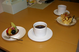 授業は喉をいたわりながらやったものの,大きな教室なので,やはり終わると喉が痛い.頭痛も酷くなってきたので(薬の効き目が切れただけかもしれないが),さっさと家に帰る.途中,近所のサニーサイドというお店でケーキを購入.奥さんが家で学会応募のアブストラクトを書いているので(あと風邪ひいて迷惑かけたというのもあるけど).コーヒーカップとソーサは,奥さんの研究室の方から結婚祝いにいただいたもの(いただきものばっかりだな,我が家は).気に入っていて,いつも使わせていただいてます.