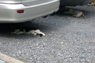福井では草刈りさんや山さんを始め,東尋坊ネコなど,結構頻繁にネコがうろついていて,このブログにもたびたび登場させていた.ここらへんではほとんど見ることがなくさびしかったのだが,車下兄弟は駅への道の途中で徘徊しているので,今後も頻繁に会えるかもしれない.