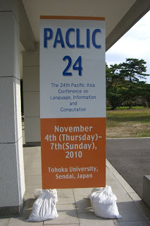 そして先週末は東北大学でPACLIC 24であった.私はプログラム委員長ということで,主な仕事は学会前に終わっていて,当日はゆっくり楽しもうという魂胆だったのだが,まあなんだかんだで色々忙しかった.とりあえず表面上は大きなトラブルもなく,無事終わったので一安心である.裏方で東北大の大学院生の皆さんがよく動いてくれて,とても助かった.アジアからの留学生もたくさんいて,雰囲気も良く,てきぱき働くのを見て,中々微笑ましいものがあった.もう少しゆっくり皆さんと話す時間があれば良かったのだけど.
